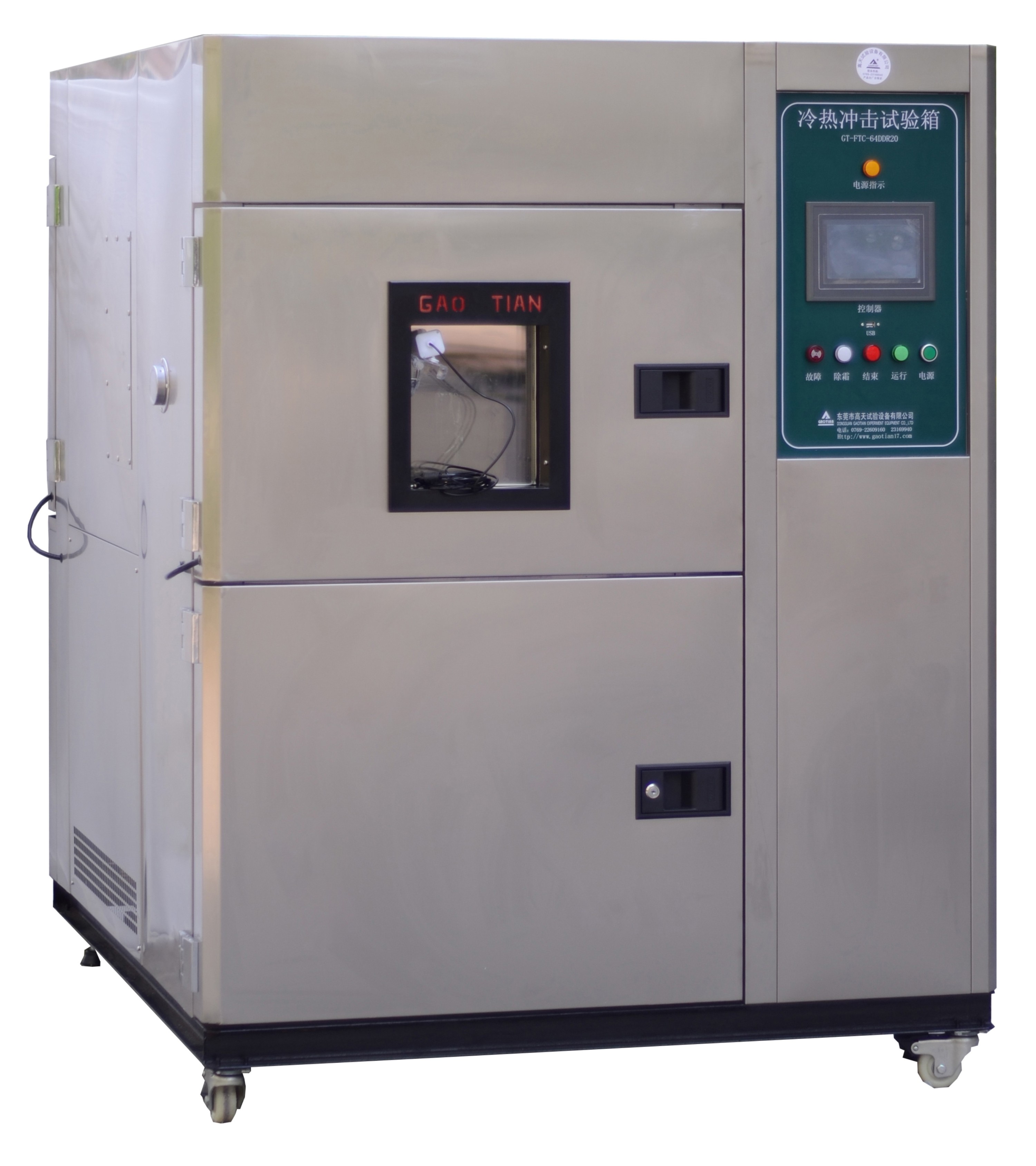 該產品適用于:電子元氣件的安全性能測試提供可靠性試驗、產品篩選試驗等,同時通過此裝備試驗,可提高產品的可靠性和進行產品的質量控制。高低溫沖擊試驗箱是航空、汽車、家電、科研等領域必備的測試設備,考核和確定電工、電子、汽車電器、材料等產品,在進行高低溫試驗的溫度環境沖擊變化后的參數及性能,使用的適應性,適用于大學,工廠,軍工,研位,等單位.